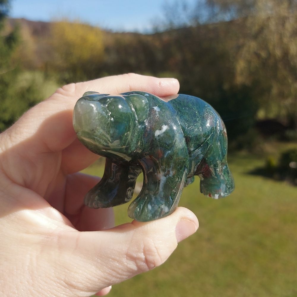 Dieser Moos Achat Bär – der Bär steht für Kraft und Mut – ideal, wenn du etwas Neues starten möchtest!