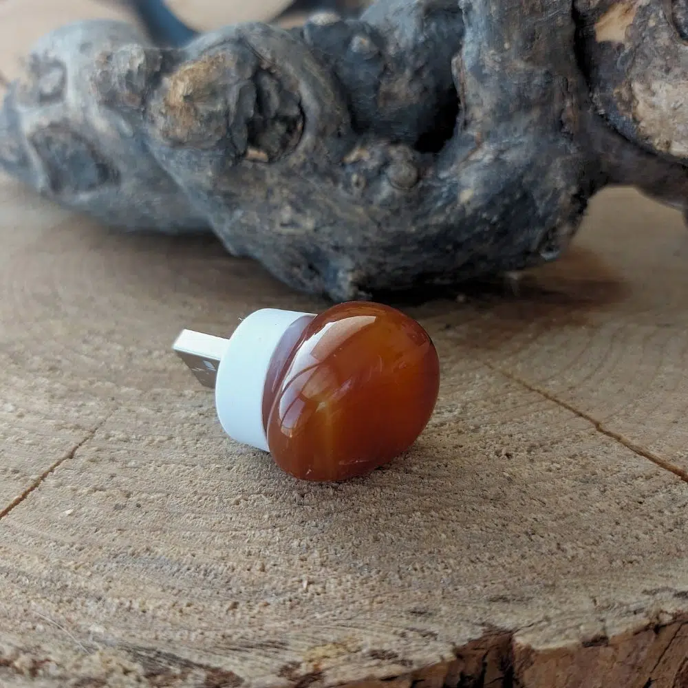 Einfach als USB Stick anstecken und das Karneol Nachtlicht strahlt ein helles orangenes Licht aus!