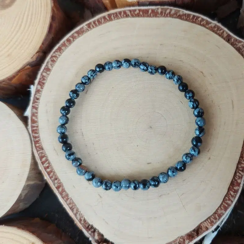 Diese bezaubernde Schneeflocken Obisidian Perlenarmband (4 mm) ist dehnbar und unterstützt dich bei Turbulenzen in deinem Leben.