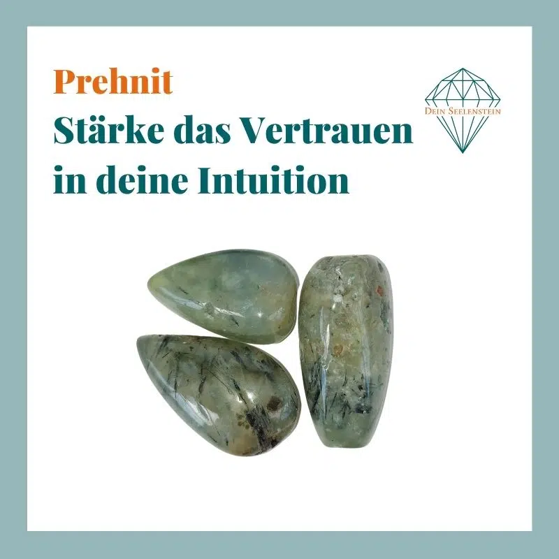 Prehnit gilt als Stein der bedingungslosen Liebe. Er ist der perfekte Stein zur Verbesserung der Intuition, „Stein der Vorhersage“. Prehnit verbindet das Herz direkt mit dem Solarplexus Chakra. Er hilft, unangenehme Wahrheiten zu akzeptieren. Außerdem lehrt er, wie man im Einklang mit der Natur und den Elementen ist.