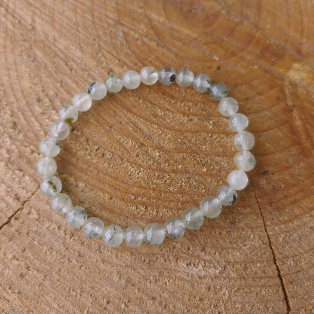 Dieses wunderschöne Prehnit Perlenarmband (6 mm) ist dehnbar und stärkt dein Vertrauen in deine Intuition!