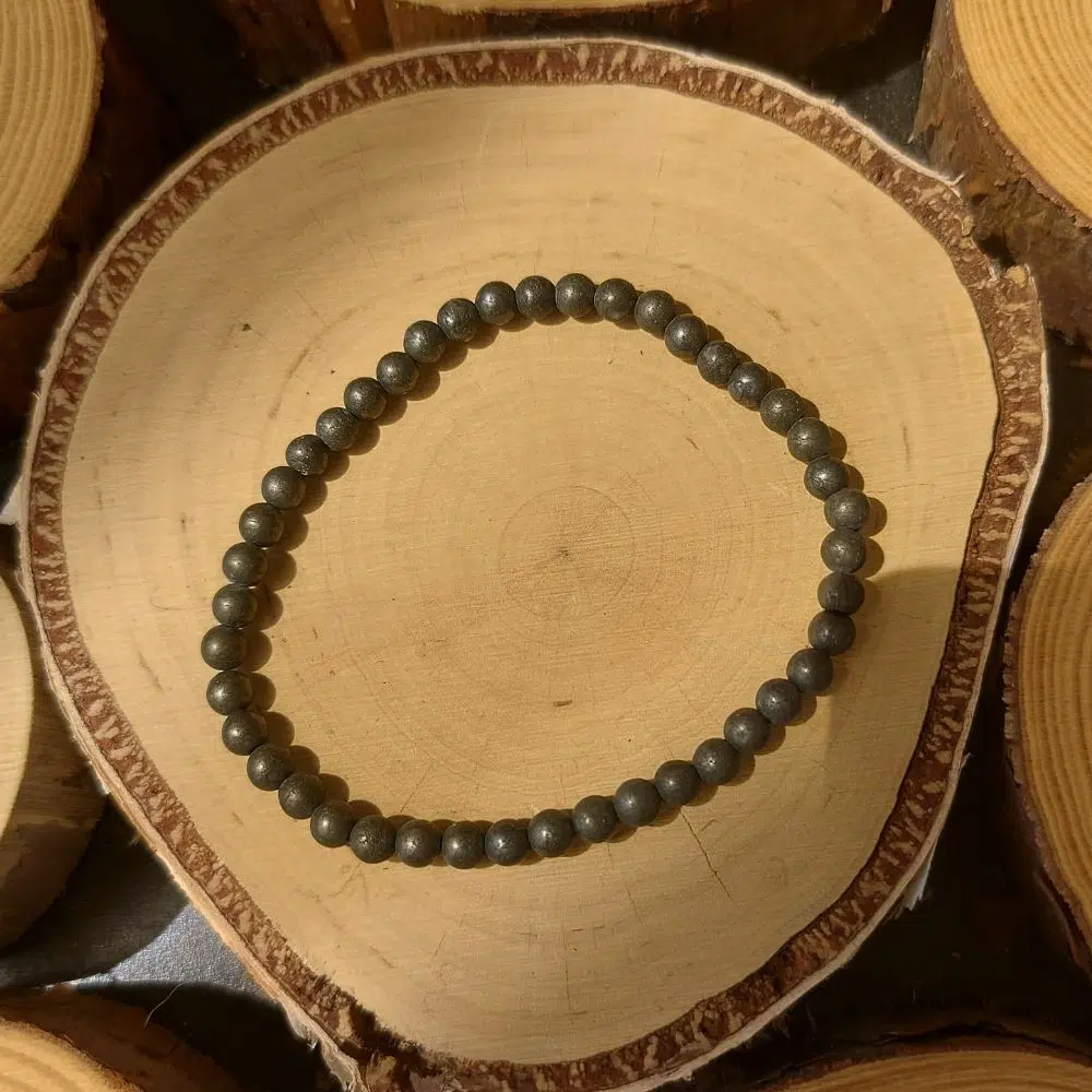 Dieses kraftvolle matte Pyrit Perlenarmband (4 mm) ist dehnbar und hilft dir dabei, mehr Fülle in dein Leben zu lassen.