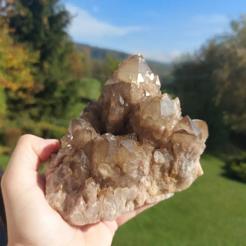 Du möchtest Energieblockaden beseitigen? Dieser kraftvolle Phantom Rauchquarz Cluster unterstützt dich dabei.
