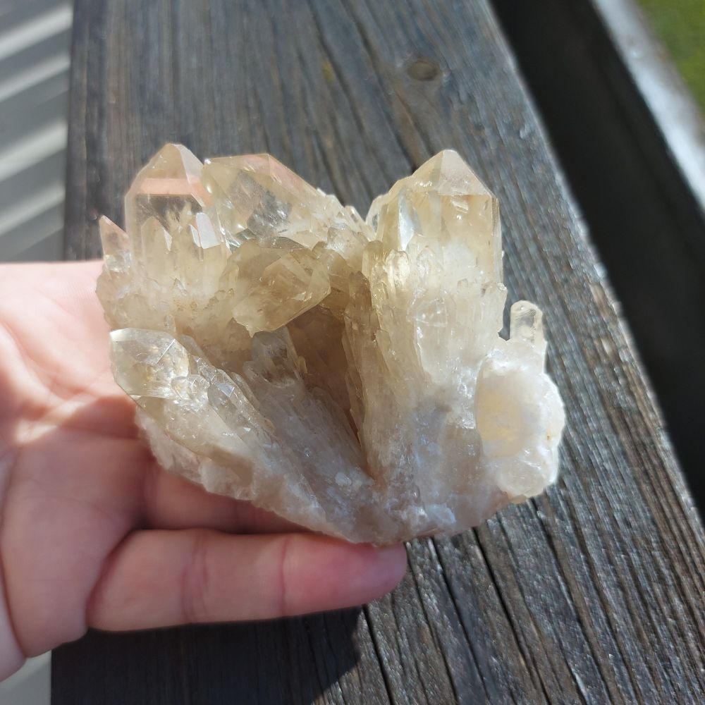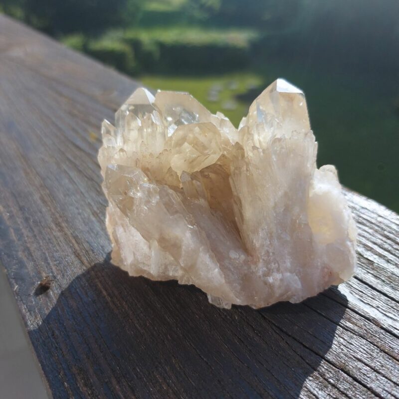 Dieser außergewöhnliche Phantom Rauchquarz Cluster mit Ranken unterstützt dich dabei Energieblockaden zu beseitigen.