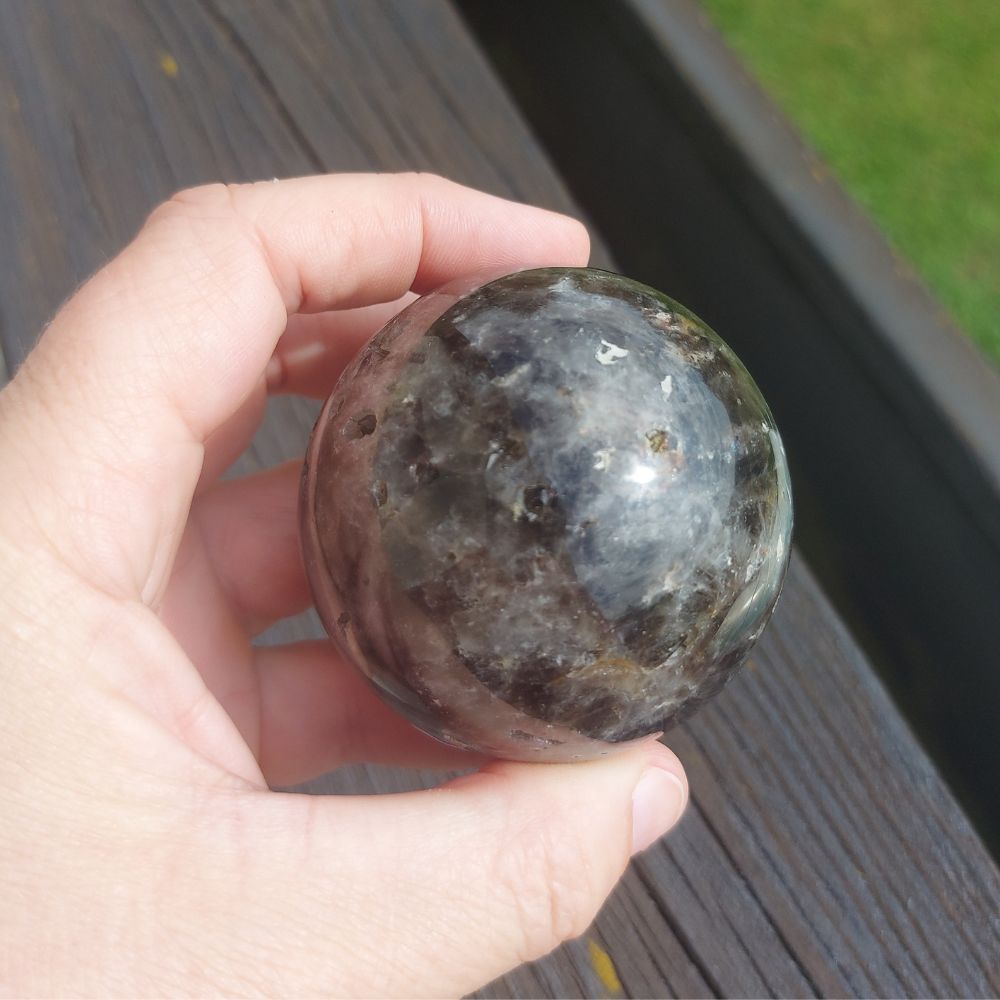 Diese einzigartige Rauchquarz Kugel mit Regenbogenprismen aus Madagaskar fördert auf allen Ebenen eine Befreiung von negativen Energien! Sie hat ein paar Unebenheiten, die man leicht spürt, die Energie ist jedoch sehr kraftvoll!