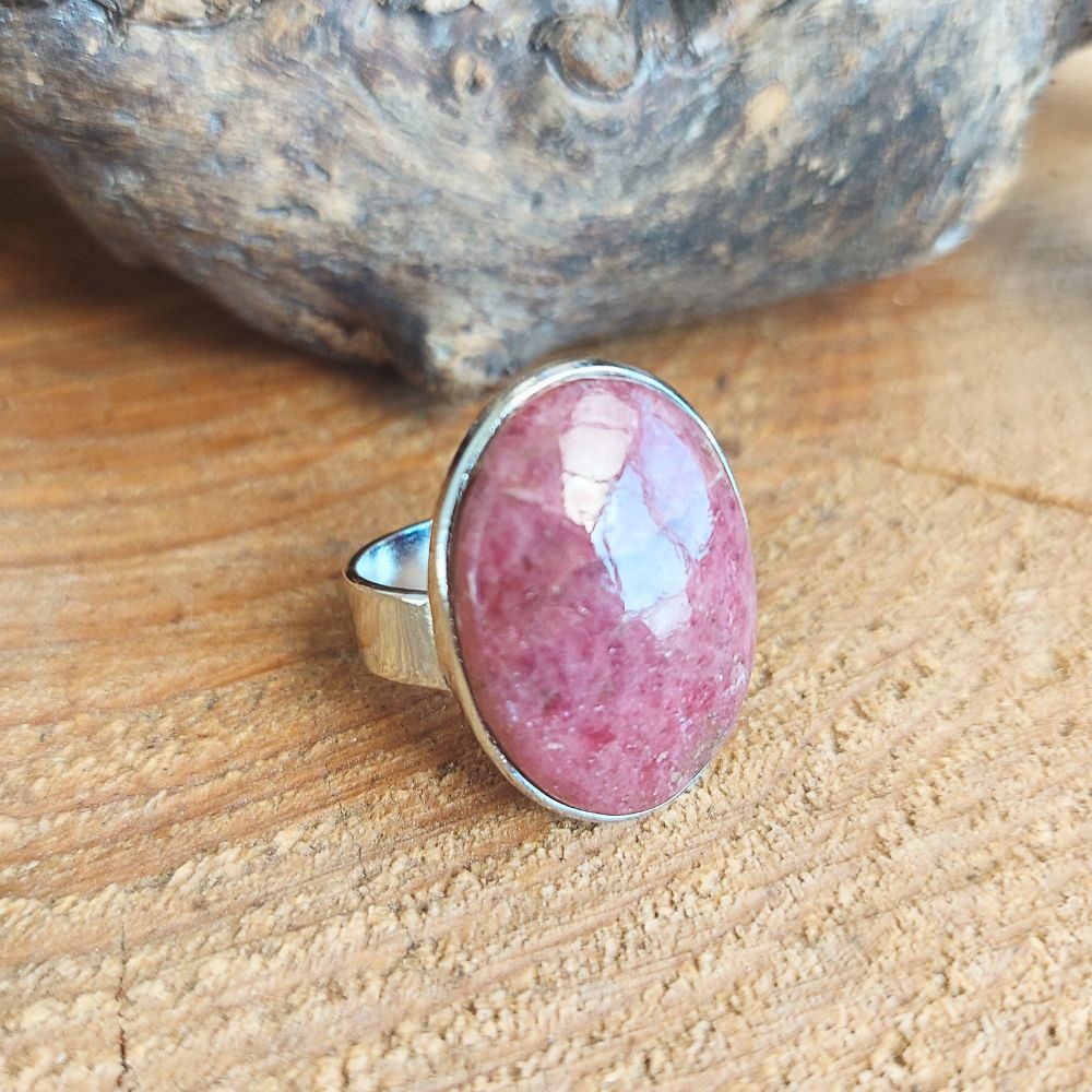 Dieser entzückende ovale Rhodonit Ring hilft dir dabei, deine Emotionen aus der Vergangenheit zu bearbeiten.