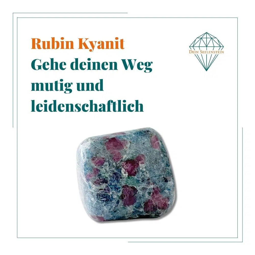 Rubin Kyanit kommt aus Indien und ist eine Kombination aus Rubin und blauem Kyanit. Er hilft dir, Mut, Leidenschaft und Stärke zu steigern. Er unterstützt den Enthusiasmus und das Vertrauen, sich für spirituelles Wachstum zu öffnen. Rubin Kyanit schützt auf geistiger und emotionaler Ebene. Er hilft, auf deinem Lebensweg voranzukommen, und gibt dir die nötige Führung, um den Weg zu finden.