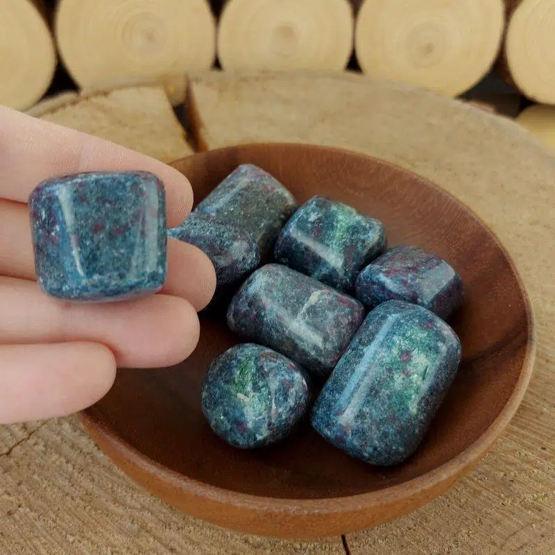 Rubin Kyanit kommt aus Indien und ist eine Kombination aus Rubin und blauem Kyanit. Er hilft dir, Mut, Leidenschaft und Stärke zu steigern. Er unterstützt den Enthusiasmus und das Vertrauen, sich für spirituelles Wachstum zu öffnen. Rubin Kyanit schützt auf geistiger und emotionaler Ebene. Er hilft, auf deinem Lebensweg voranzukommen, und gibt dir die nötige Führung, um den Weg zu finden.