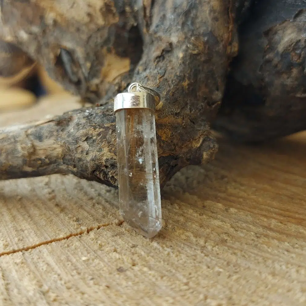 Bezaubernder klarer Rutilquarz Anhänger mit einer Spitze und echtem Silber. Rutilquarz ist einer der wichtigsten Begleiter für dein spirituelles Wachstum. Ein absoluter MUSS Heilstein!