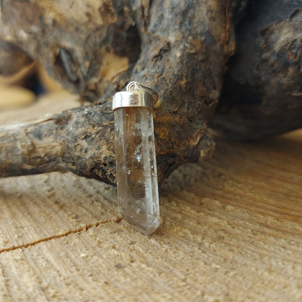 Bezaubernder klarer Rutilquarz Anhänger mit einer Spitze und echtem Silber. Rutilquarz ist einer der wichtigsten Begleiter für dein spirituelles Wachstum. Ein absoluter MUSS Heilstein!