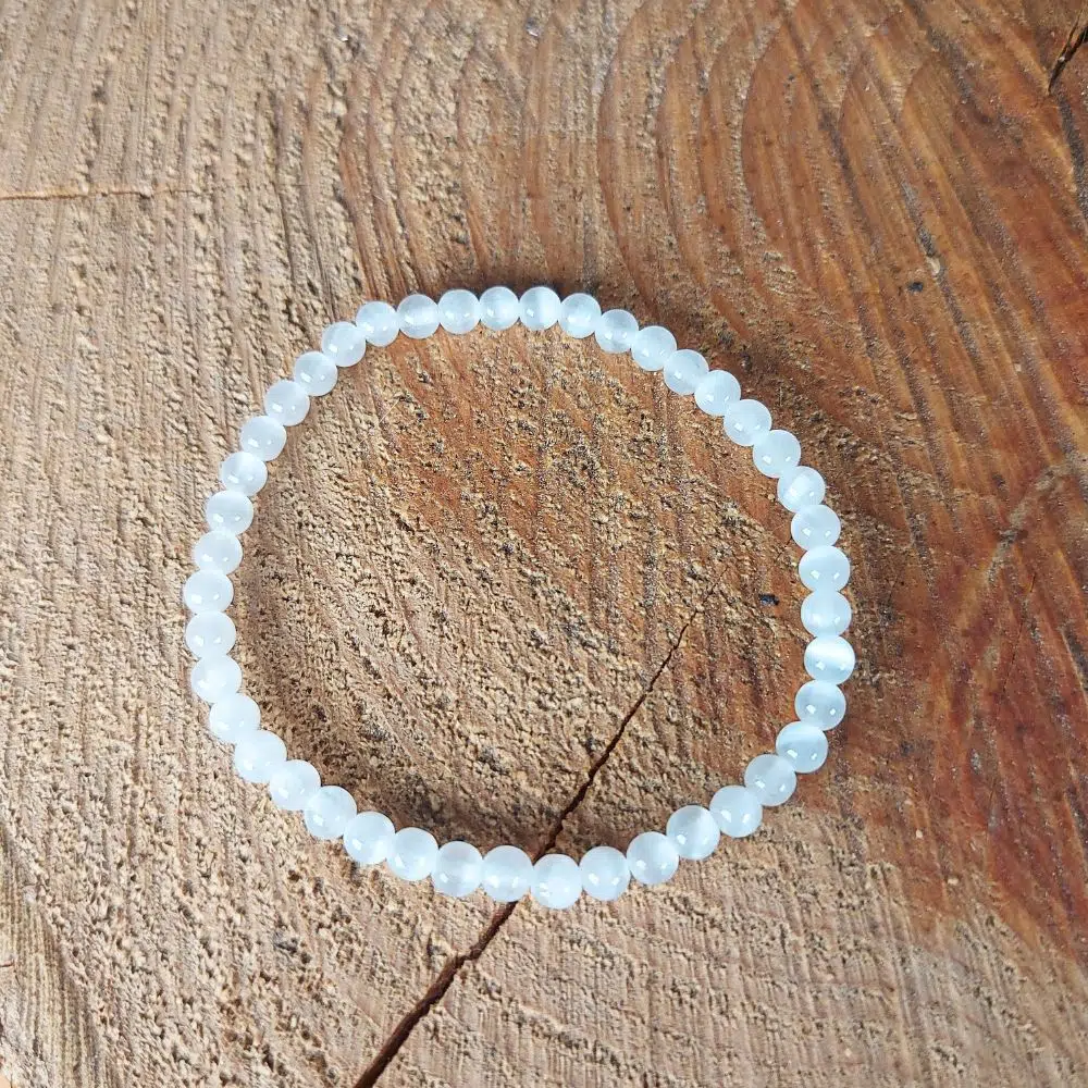 Dieses energievolle Selenit Perlenarmband (4 mm) ist dehnbar und hilft dir, deine Schwingung zu erhöhen.