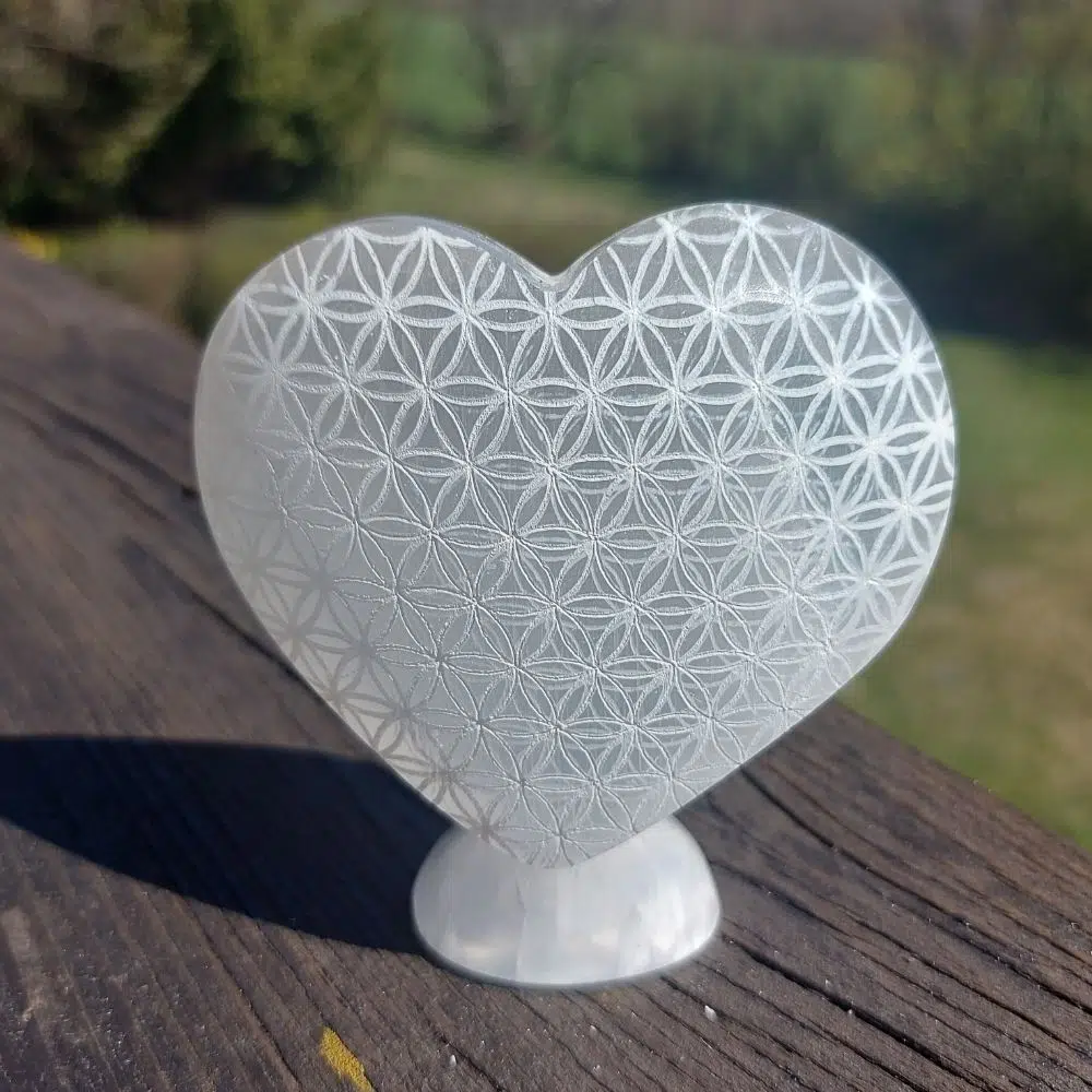 Außergewöhnliches großes stehendes Selenit Herz aus Marokko zur Klärung deines Geistes, der Energien im Raum und zur Schlafunterstützung!