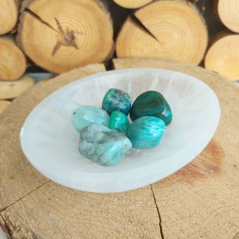 Du kannst natürlich auch deine Trommelsteine oder Handsteine in deine große Selenit Schüssel für ein paar Stunden zum Reinigen und Aufladen legen.