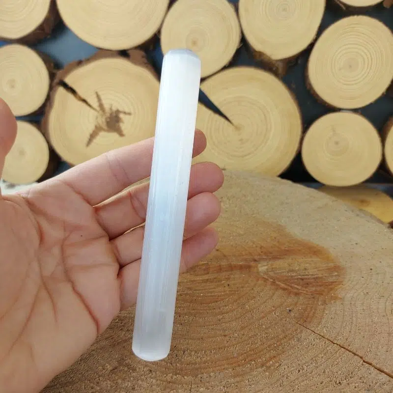 Dieser dünne, runde Selenit Stab ist sehr handlich und kann man dadurch sehr gut in der Hand halten. Ideal bei der Meditation und zur Energiearbeit, wenn du deinen Geist aufräumen möchtest.