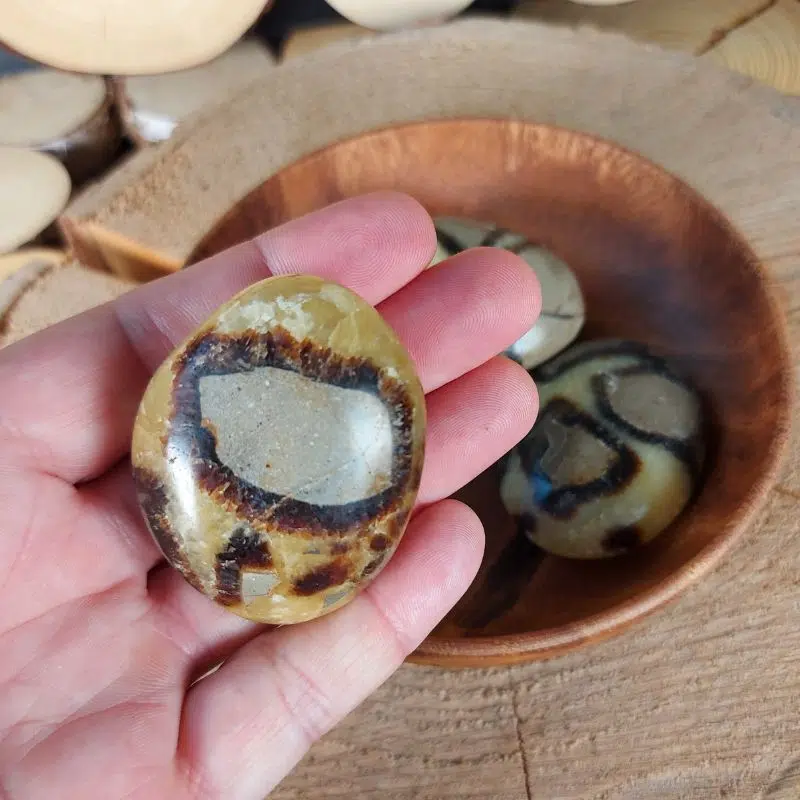 Septarie wird auch Drachenstein genannt und unterstützt dich dabei, dich deinen Emotionen und Konflikten zu stellen. Er vereint Erdung, Schutz und tiefgehende Heilung. Dieser Heilstein stärkt deine innere Stabilität, gibt dir Halt in Zeiten der Veränderung und fördert deine Selbstreflexion. Er unterstützt dich dabei, emotionale Blockaden zu lösen und wieder mit deinem inneren Wissen in Kontakt zu kommen.