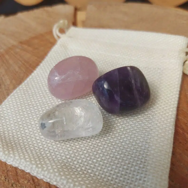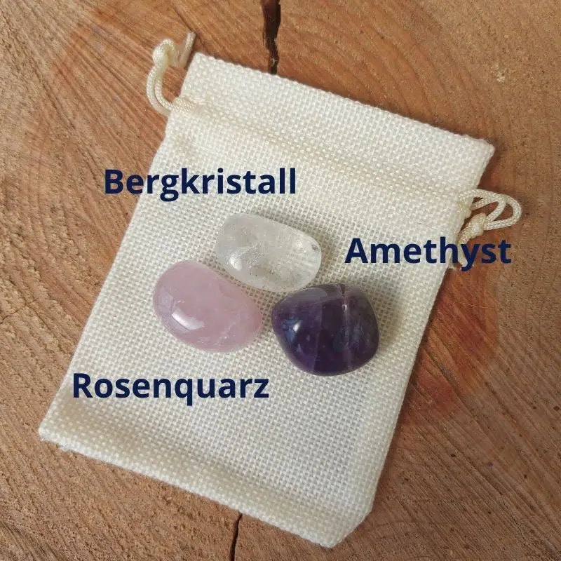 Diese 3 Heilsteine – Bergkristall, Rosenquarz und Amethyst als Trommelsteine Set sind eine optimale Kombination zum Einstieg in die Heilsteine Welt. Diese 3 Heilsteine sollten auf keinen Fall in deiner Sammlung fehlen. Oftmals fängt man auch mit diesen 3 Heilsteinen an. Sie sind super Allrounder und eignen sich für sehr viele Situationen.