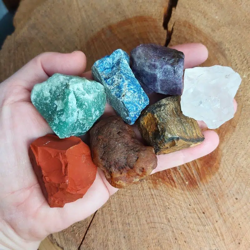 Spüre die rohe Kraft dieser 7 Heilsteine in deinem Energiefeld – ideal für die Arbeit mit deinen Energiezentren (= Chakren).