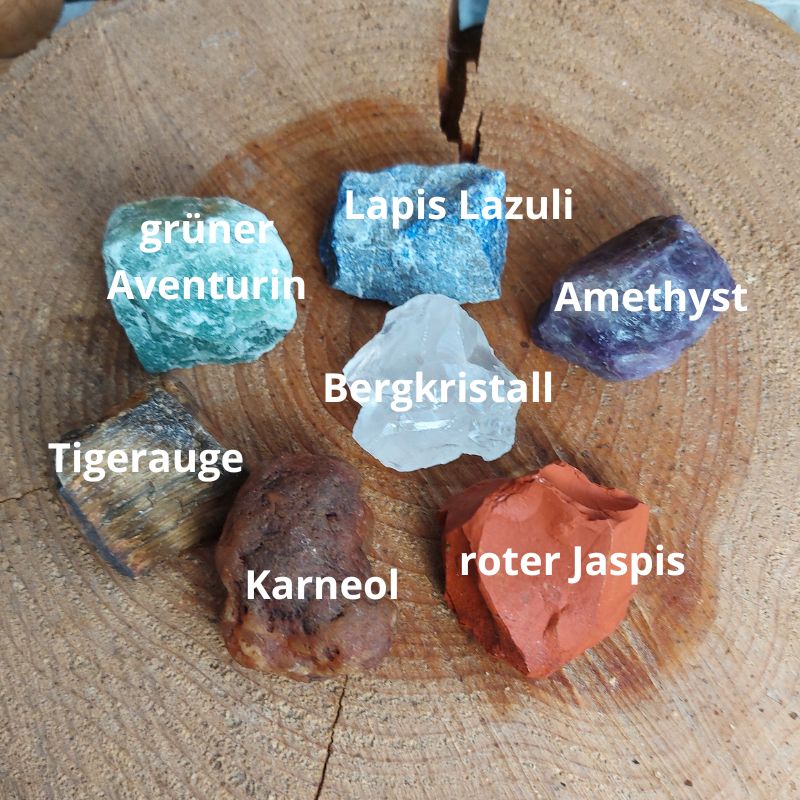Spüre die rohe Kraft dieser 7 Heilsteine in deinem Energiefeld – ideal für die Arbeit mit deinen Energiezentren (= Chakren).