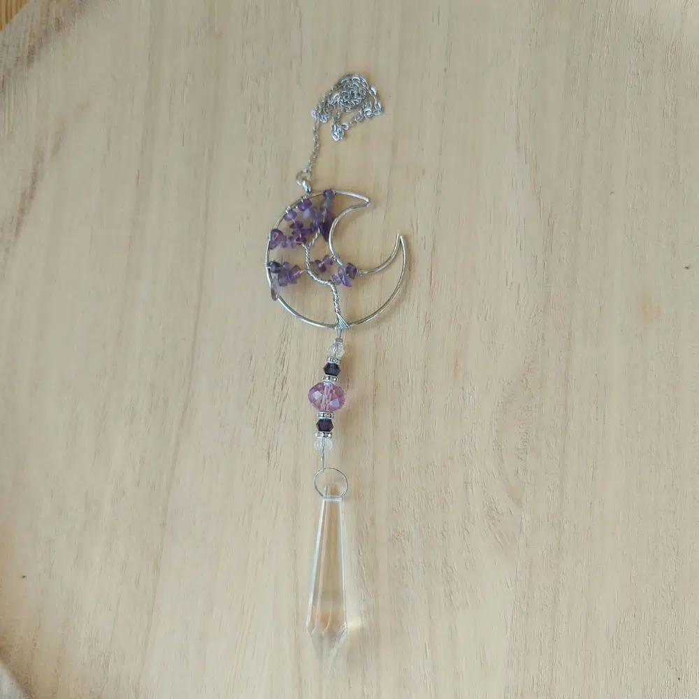 Wunderschöner Kristall Regenbogen Prismen Sonnenfänger mit Amethyst Steinen in Form des Mondes.