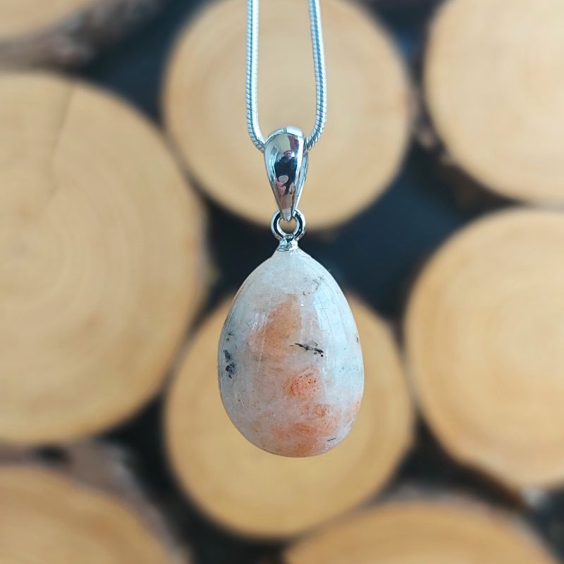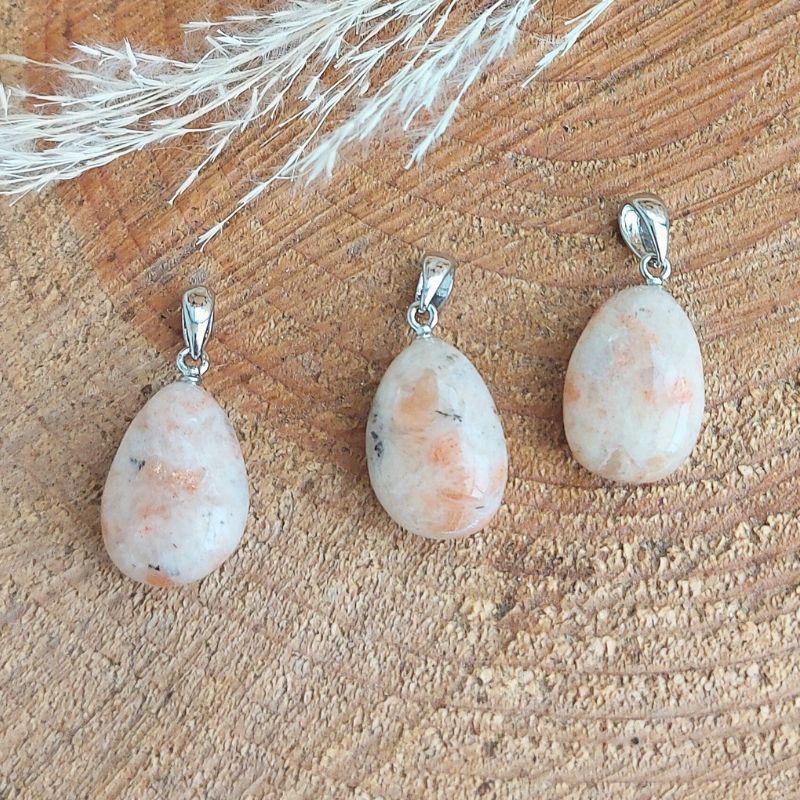 Der kraftvolle Sonnenstein Anhänger als Trommelstein in Tropfenform steigert deine Lebensfreude und fördert dein Selbstvertrauen!
