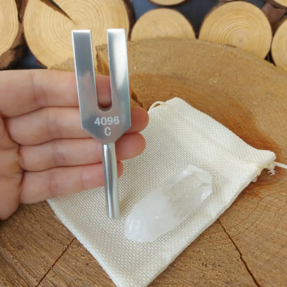 Stimmgabel Set mit Bergkristall zur Reinigung von Heilsteinen (4096 Hz)