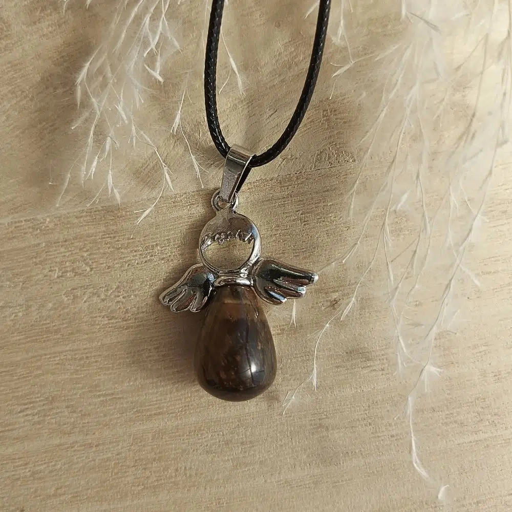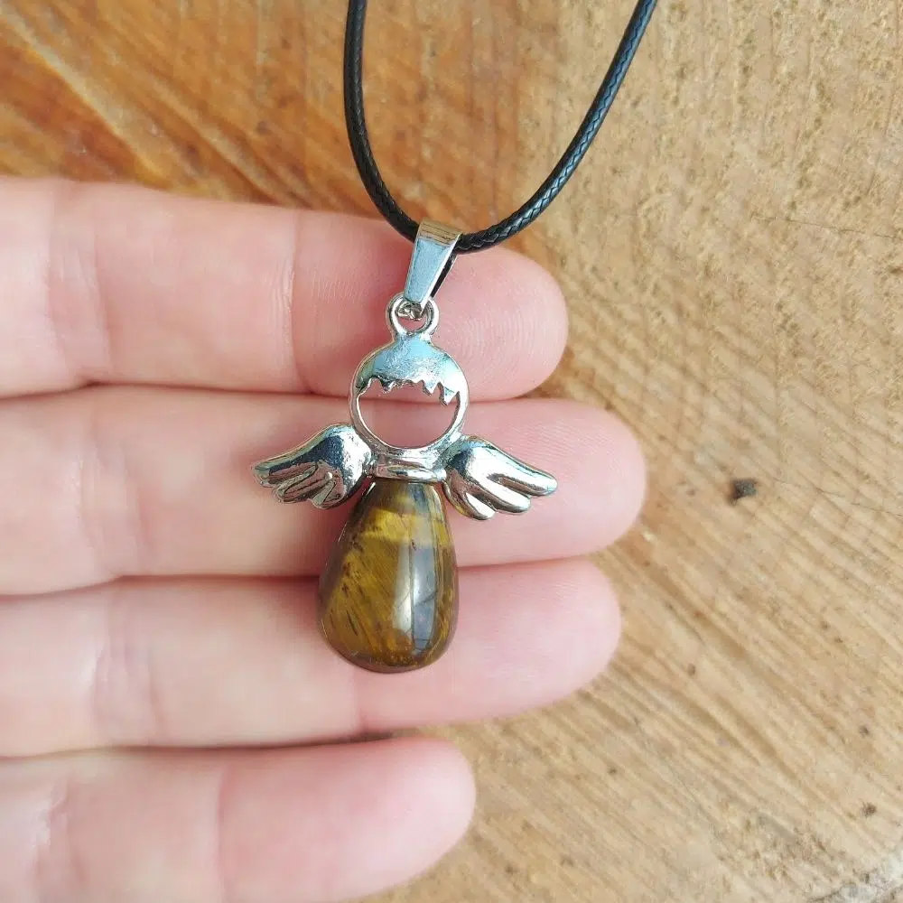Dieser kraftvolle Tigerauge Engel Anhänger (versilbert) unterstützt deine Zielstrebigkeit!