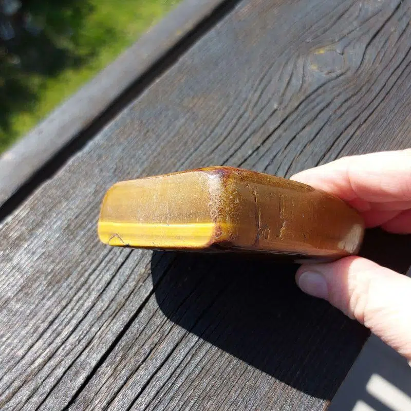 Diese kraftvolle, starke Freiform vom Tigerauge kommt aus Südafrika. Er unterstützt dich, in deine Kraft zu gehen, sie gibt dir auch Halt.