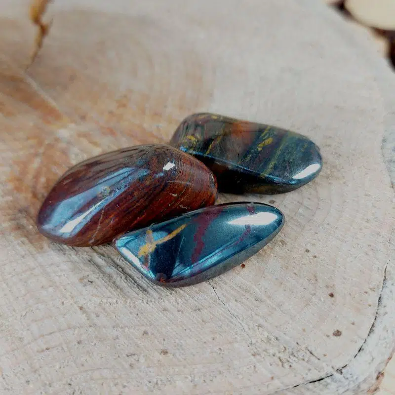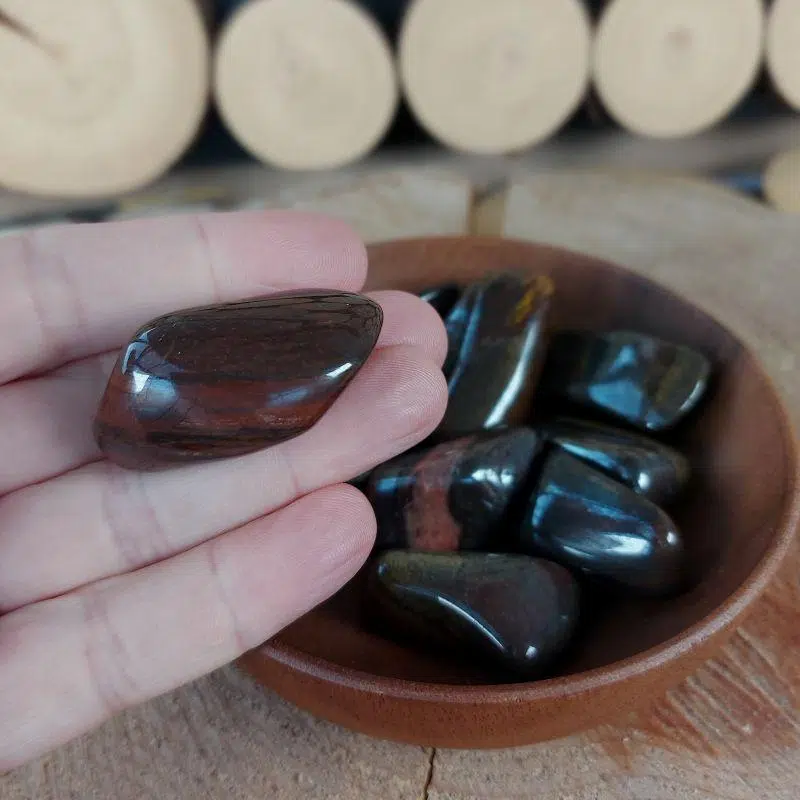 Tigereisen, auch Muggelstein genannt, vereint drei mächtige Steine: Tigerauge, Roter Jaspis und Hämatit, was ihn zu einem hervorragenden Verbündeten macht, wenn es darum geht, Hindernisse zu überwinden. Er ist ein Heilstein der Stärke, der Konzentration und der Motivation. Tigereisen inspiriert zu mehr Mut und Vertrauen und erdet gleichzeitig.