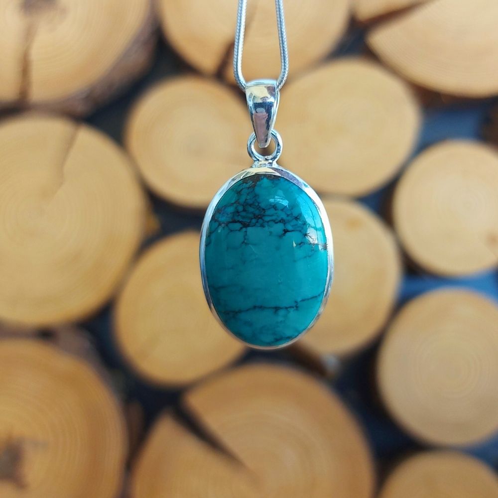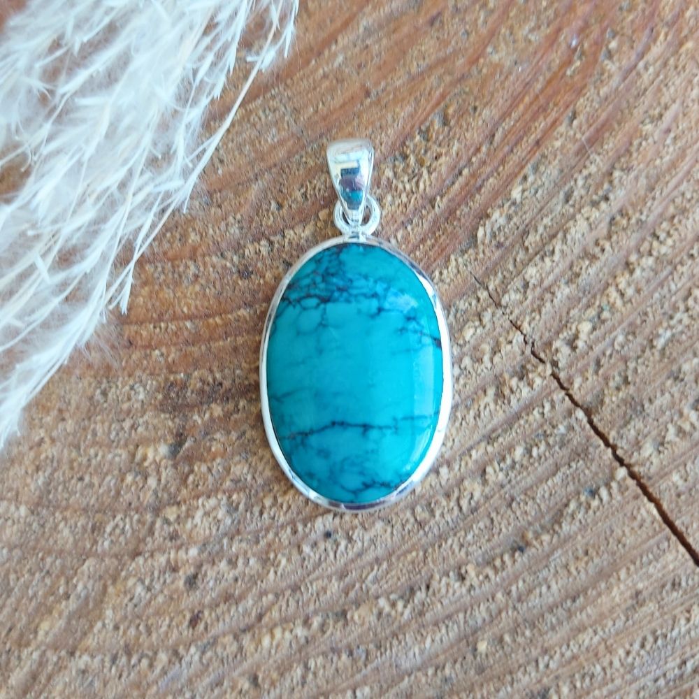 Kraftvoller ovaler Türkis Anhänger mit einer Silberfassung – er hilft dir bei deinem Weg zu deiner Wahrheit!
