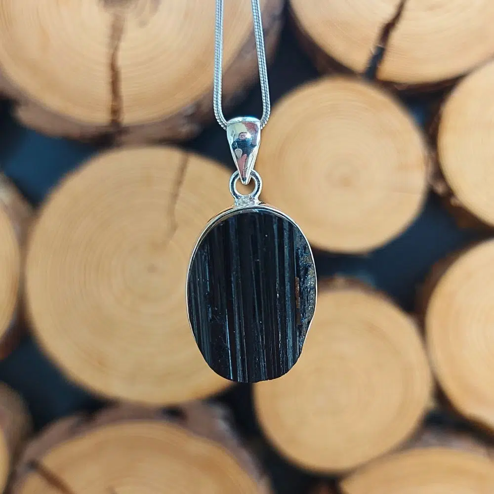 Dieser kraftvoller Turmalin Rohstein Anhänger aus echtem Silber schützt dich täglich vor negativen Einflüssen.