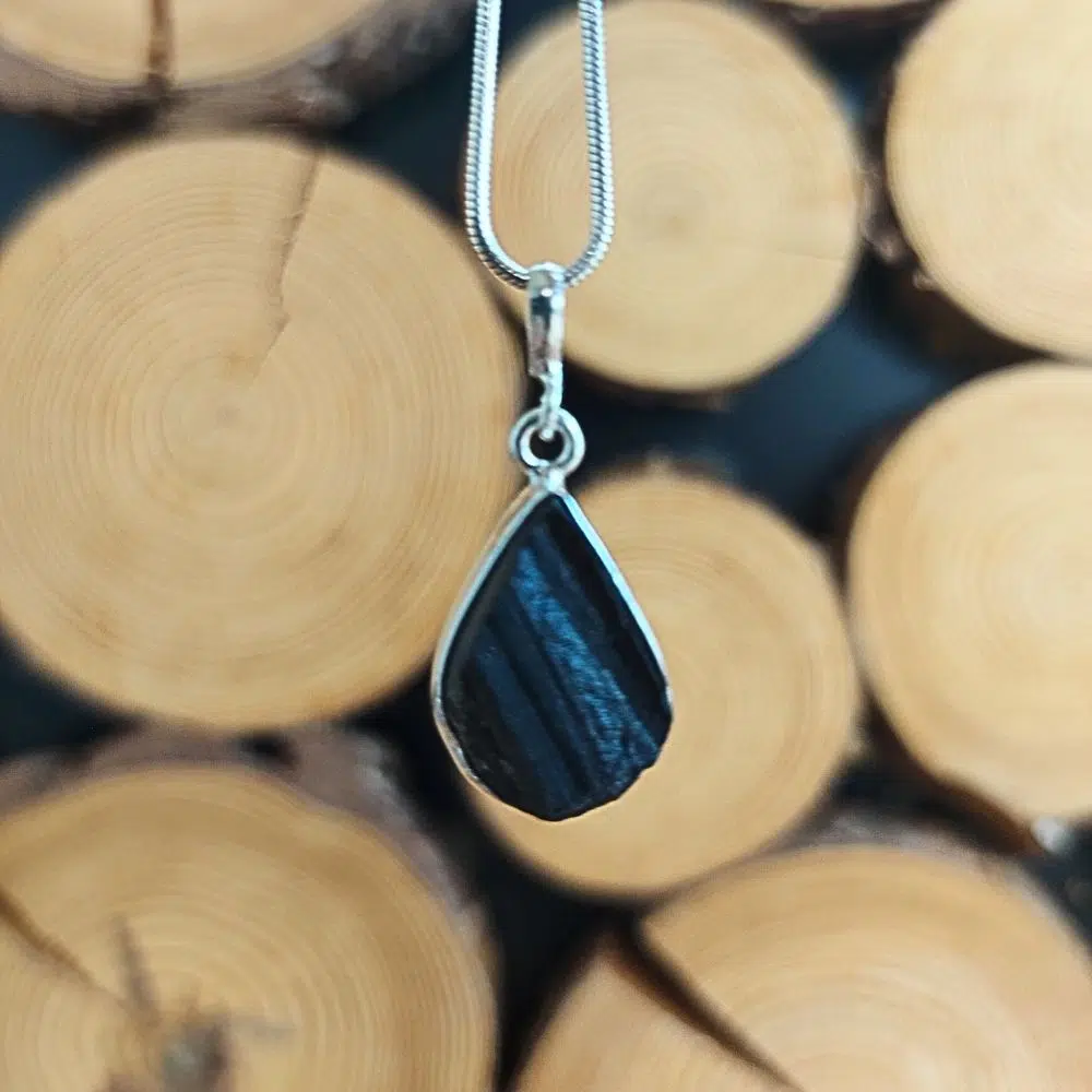 Dieser kraftvoller Turmalin Rohstein Anhänger aus echtem Silber schützt dich im Alltag vor negativen Energien.