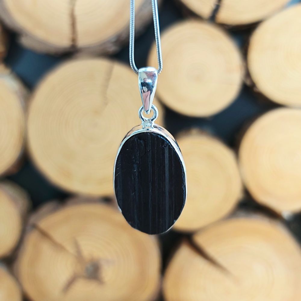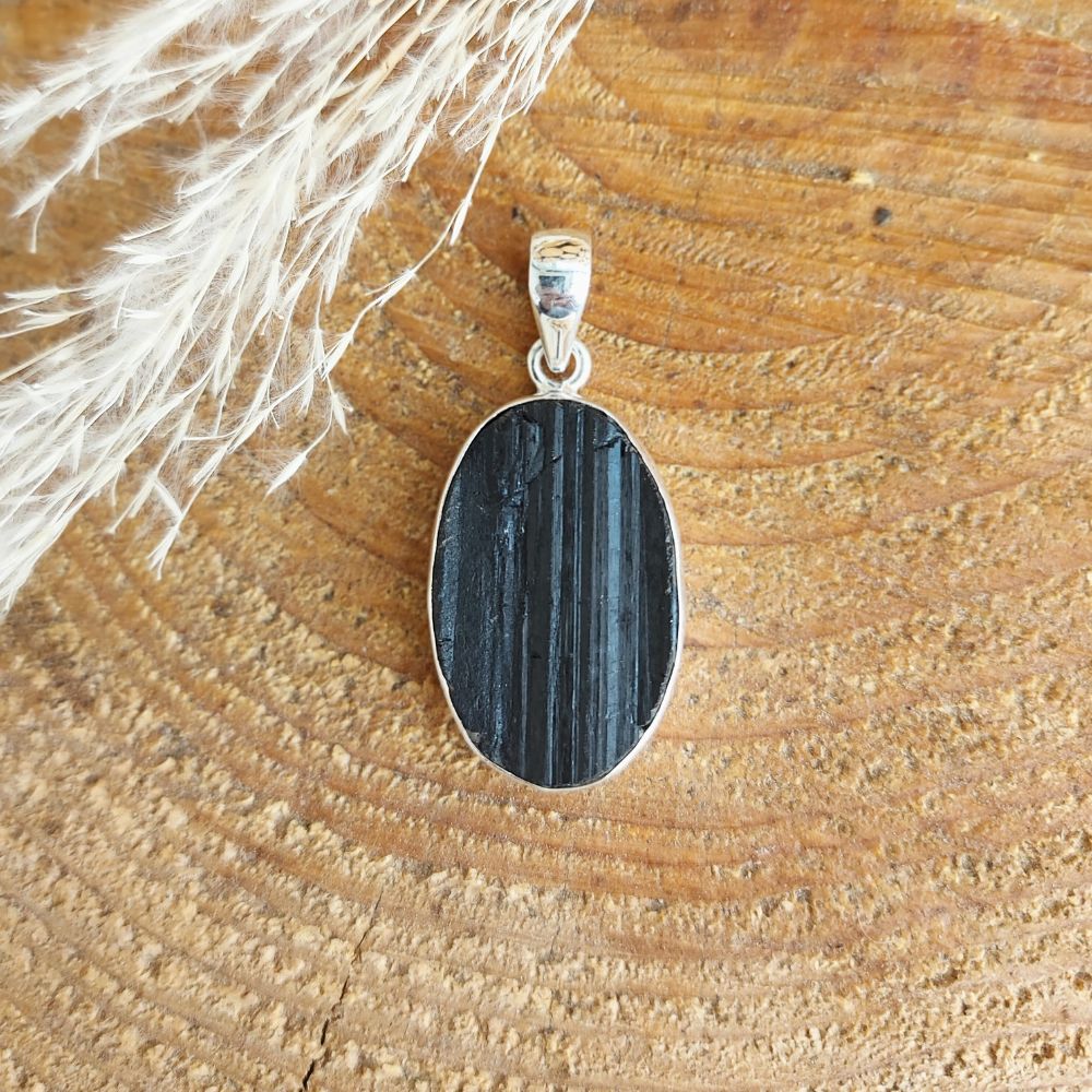 Der besonders kraftvolle Turmalin Rohstein Anhänger aus echtem Silber schützt dich im Alltag vor negativen Energien.