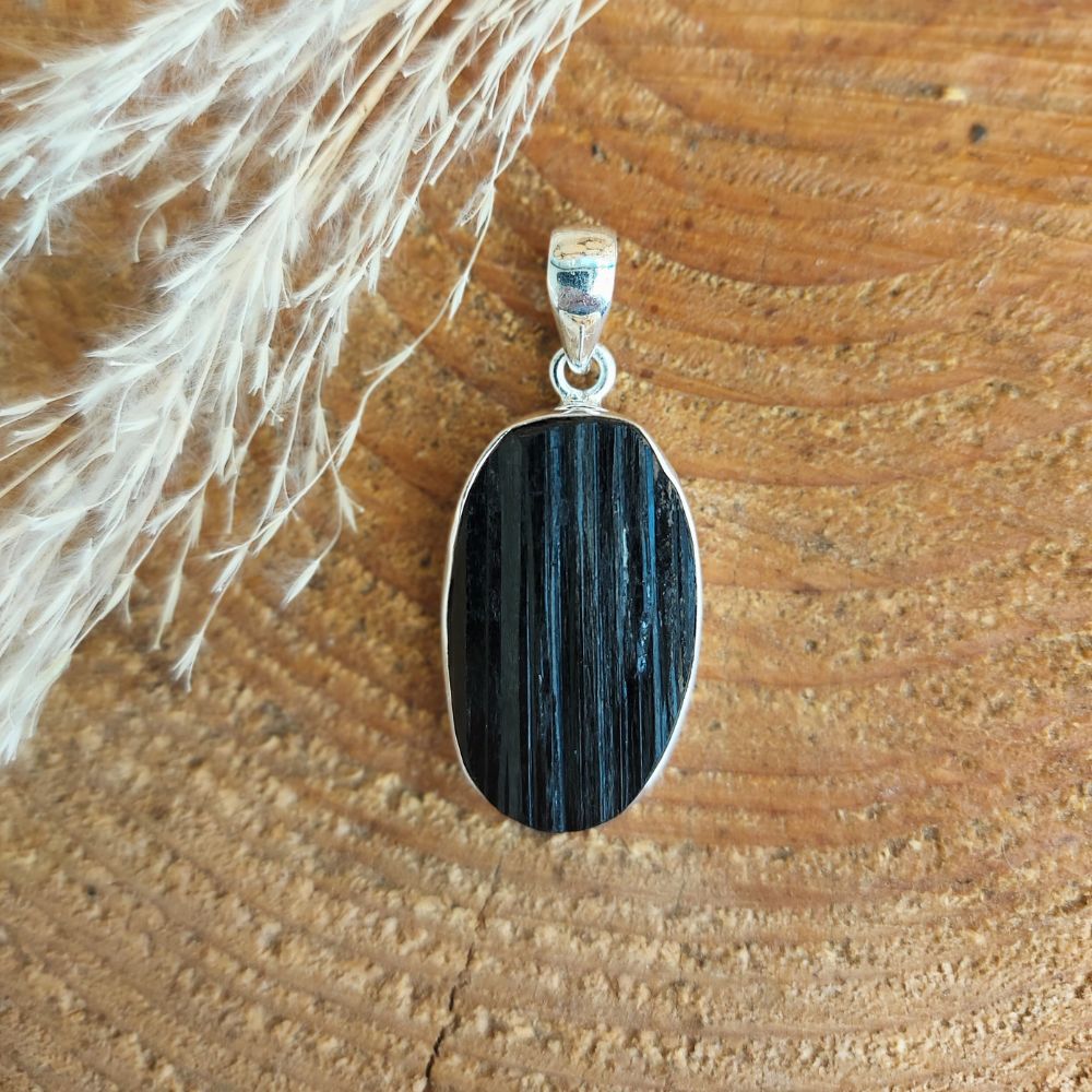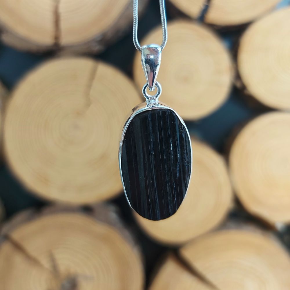 Dieser große Turmalin Rohstein Anhänger aus echtem Silber schützt dich im Alltag vor negativen Energien.