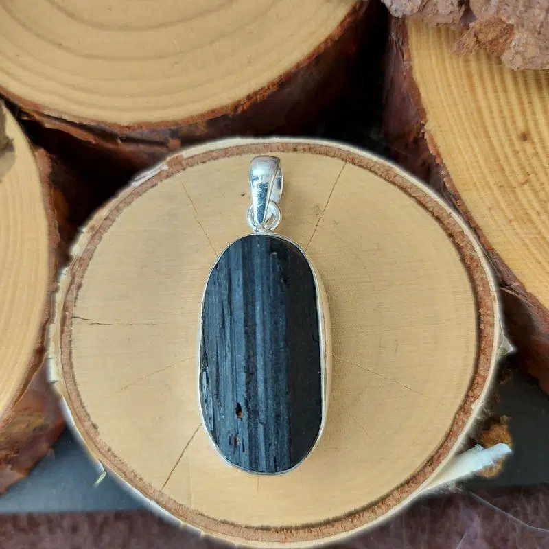 Dieser mächtige Turmalin Rohstein Anhänger aus echtem Silber bietet dir ein hohes energetisches Schutzschild.
