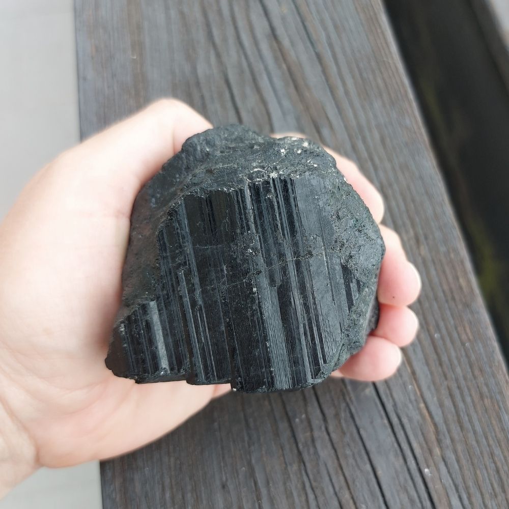 Dieser mittelgroße, schwarze Turmalin Rohstein ist einer der wichtigsten Schutzsteine für deine Wohnung oder Haus.