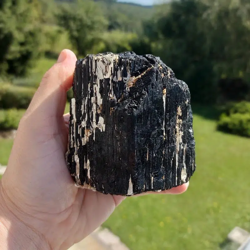 Einer der wichtigsten Schutzsteine für dein Zuhause – der schwarze Turmalin Rohstein.