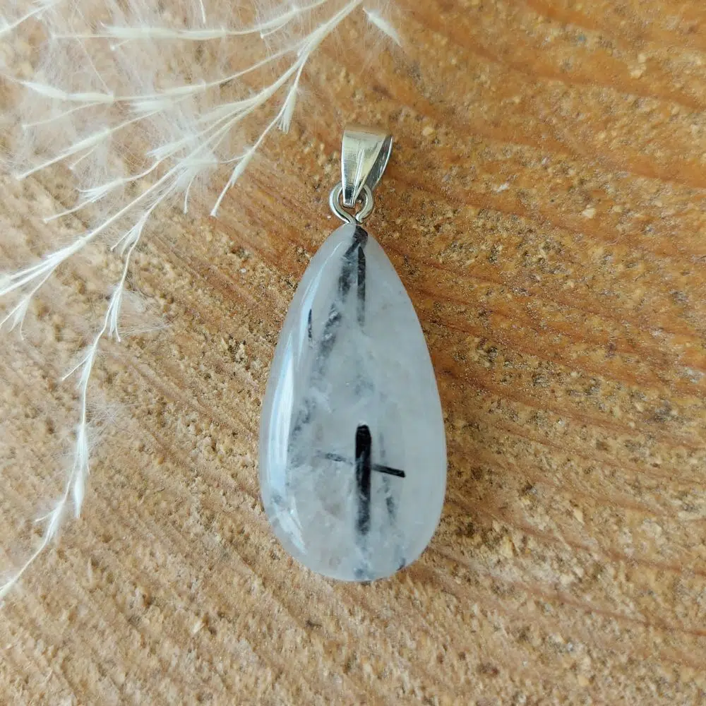 Einzigartiger Turmalinquarz Anhänger in Tropfenform.