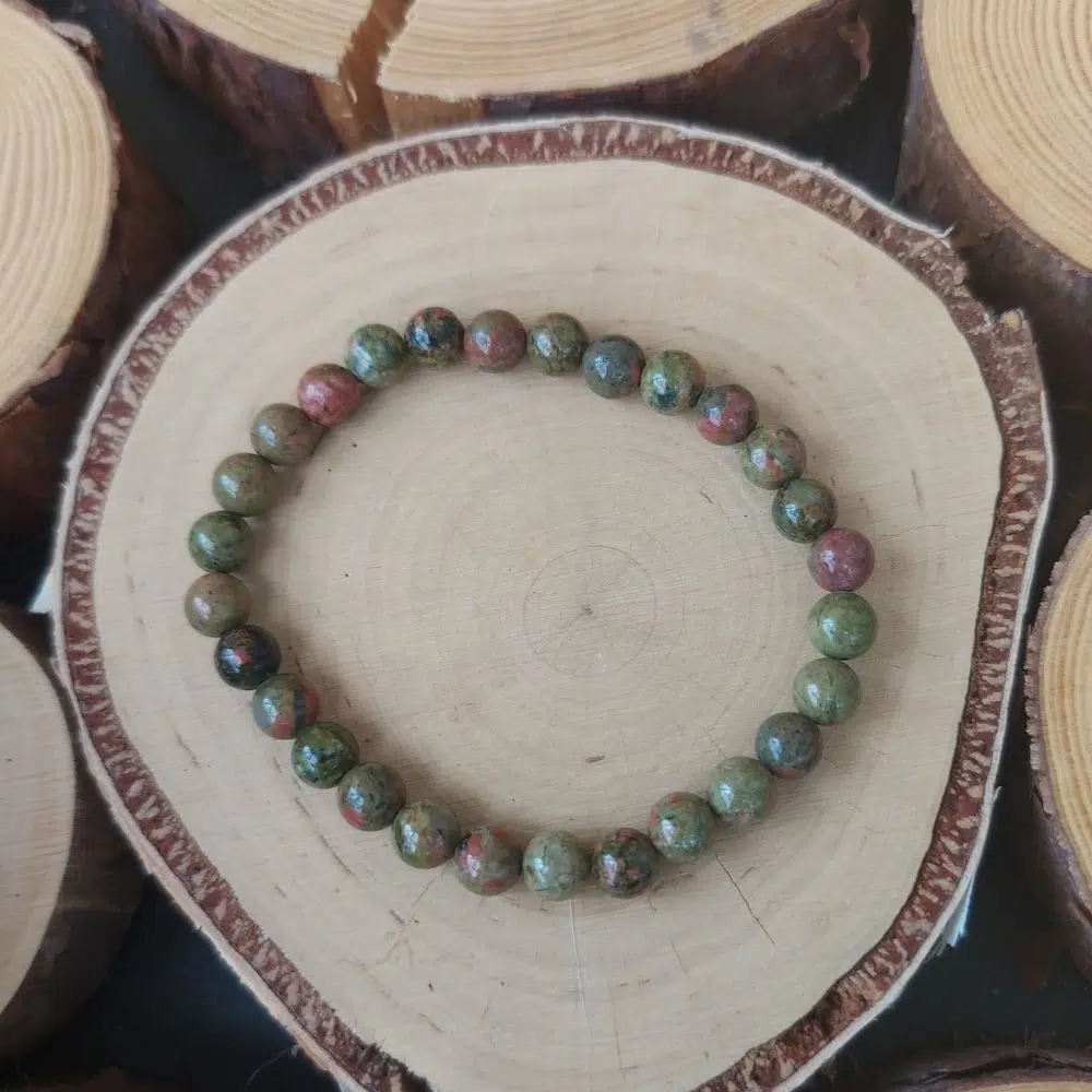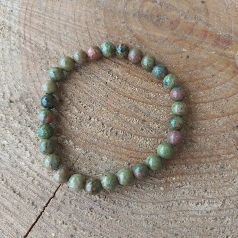 Dieses wunderschöne Unakit Perlenarmband (6 mm) ist dehnbar und hilft dir bei der Verarbeitung deiner Gefühle und erdet dich gleichzeitig.