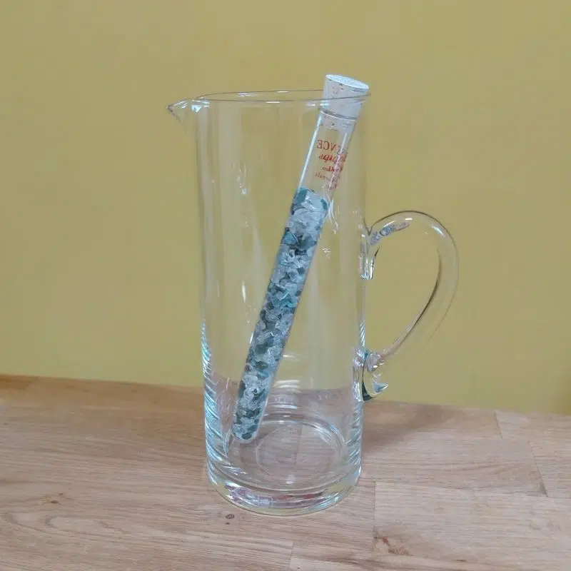 Zuerst reinige den Glasstab. Danach stelle ihn vorsichtig in einen Wasserkrug/Karaffe und fülle ihn mit Wasser. Warte ca. 15-30 Minuten und das Wasser ist energetisiert. Das Edelsteinwasser hat nun die Informationen von den Heilsteinen/Kristallen/Edelsteinen aufgenommen. Du kannst den Wasserkrug immer wieder mit frischem Wasser auffüllen. Bitte kein kohlesäurehaltiges Wasser verwenden.